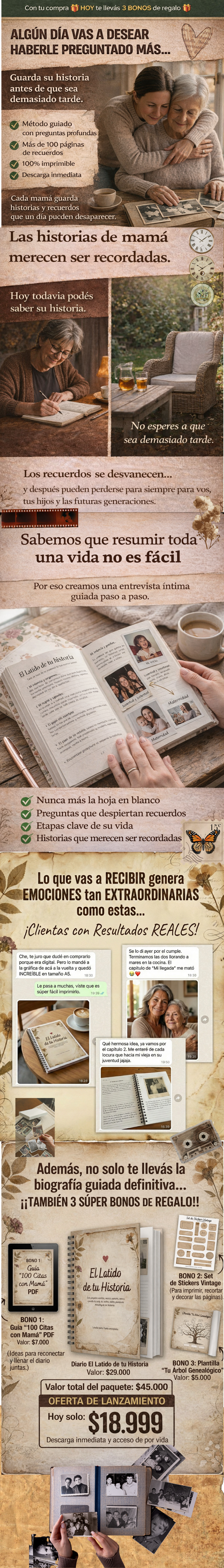 Mi mamá ya está grande y me cayó la ficha de que no sabía nada de su adolescencia ni de cómo eran mis abuelos. Se lo regalé y nos pasamos la tarde llorando mientras lo llenaba.